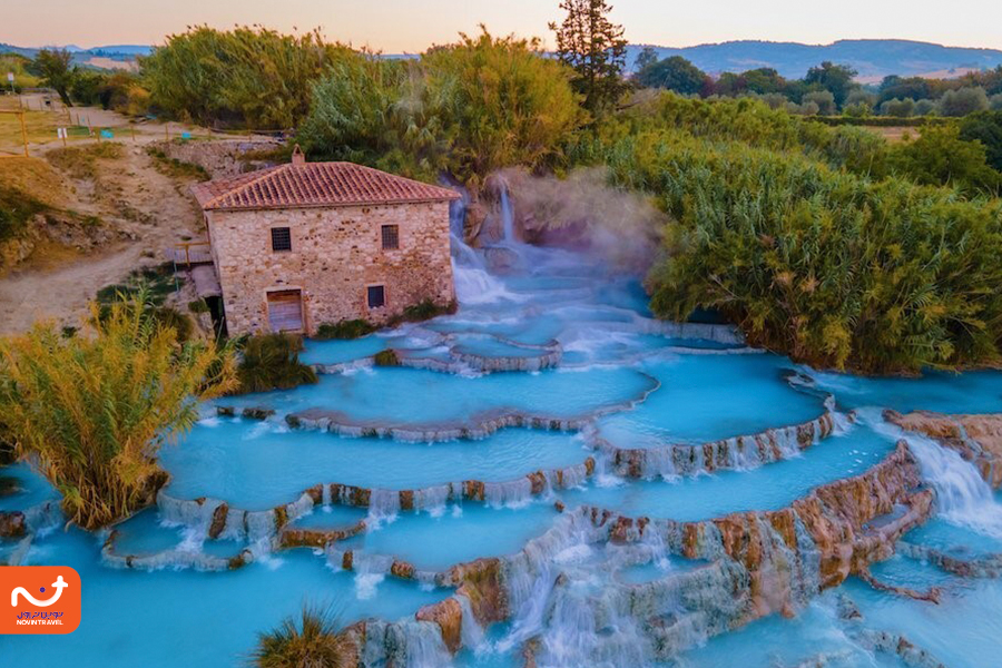آبشار مولینو، واقع در ایتالیا، یکی از زیباترین چشمههای آب گرم طبیعی جهان است. این مکان که در نزدیکی شهر ساتوریا قرار دارد، به خاطر آبشارهای پلکانی خود که از دل زمین میجوشند و به حوضچههایی آرام میریزند، شهرت دارد. آب گرم این چشمهها دارای خواص درمانی است و بسیاری از گردشگران برای لذت بردن از این تجربه آرامشبخش به اینجا سفر میکنند.