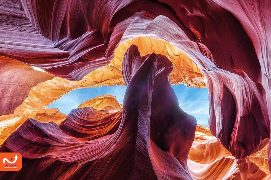 آنتلوپ کنیون، یکی از معروفترین درههای آمریکاست که در ایالت آریزونا قرار دارد. این دره باریک و پیچدرپیچ، با دیوارهای سنگی قرمز و نارنجی رنگارنگش، نتیجهی میلیونها سال فرسایش آب و باد بر ماسهسنگها است. نور خورشید که از شکافهای باریک دره میتابد، با برخورد به دیوارهای سنگی، سایهها و رنگهای خیرهکنندهای ایجاد میکند و منظرهای سورئال و فرازمینی را به نمایش میگذارد.