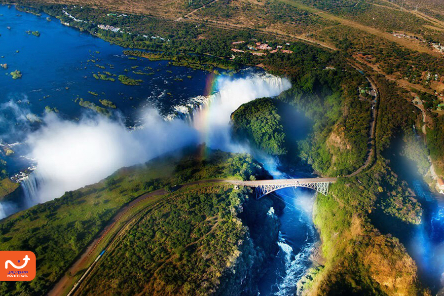 آبشار ویکتوریا یکی از بزرگترین و پرآبترین آبشارهای جهان است که در مرز زیمبابوه و زامبیا قرار دارد. این آبشار عظیم که توسط رودخانه زامبزی ایجاد شده است، با عرض بیش از 1,700 متر و ارتفاع 108 متر، به «دود غرشکننده» (Mosi oa-Tunya) معروف است. قطرات آب که در هوا پراکنده میشوند، گاهی بهصورت رنگینکمانهای زیبا در آسمان ظاهر میشوند و منظرهای خیرهکننده ایجاد میکنند.